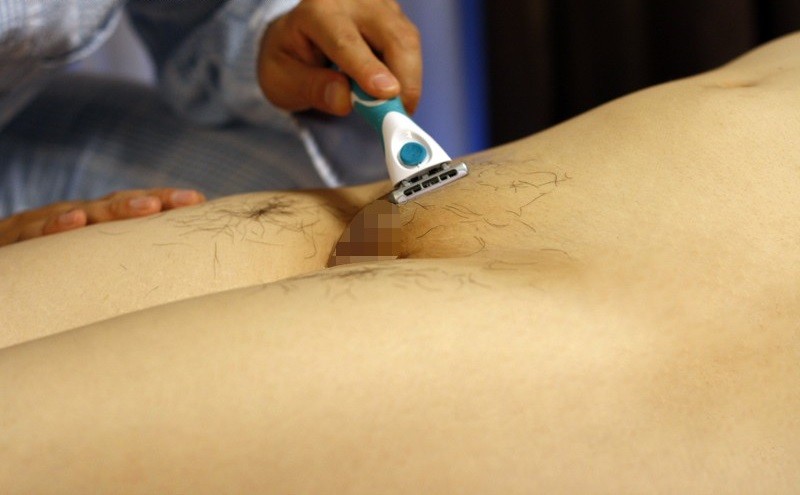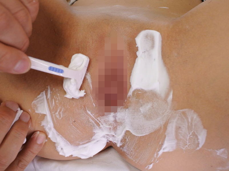 パイパンにしたいのか…濃すぎるマン毛を処理してるだけなのか!?徐々に見えるワレメが卑猥な剃毛エロ画像