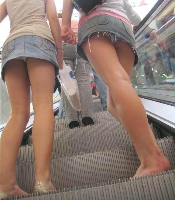 思わず目を引くミニスカ女子のパンチラ…お尻も太もももエロいローアングルパンチラ画像