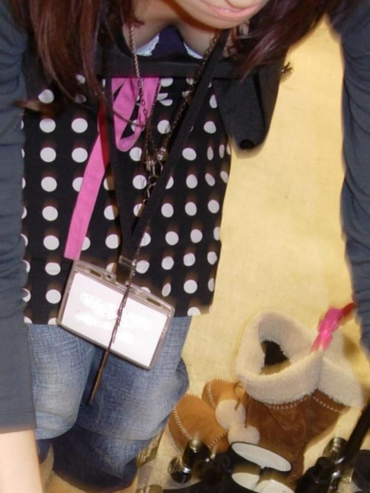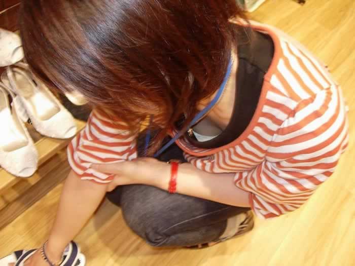 お仕事中の女性店員をスケベな目で隠し撮りしたおっぱい…ゆるゆるの胸元がエロ過ぎる胸チラ画像