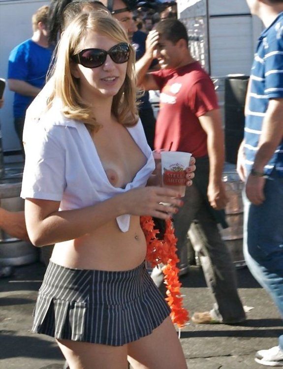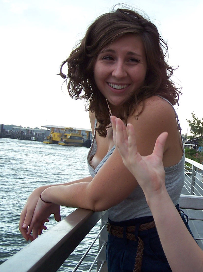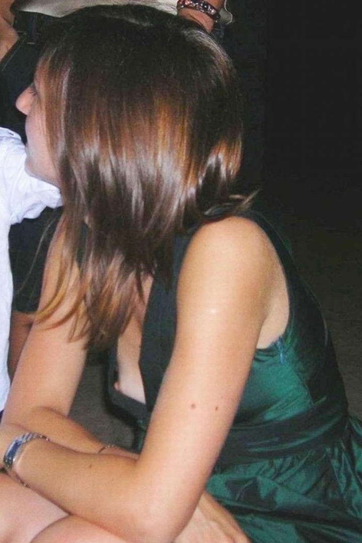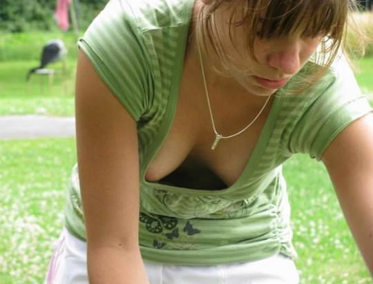 ポロリした乳首がめちゃくちゃセクシー!ノーブラの外国人が乳首を撮られた胸チラハプニング画像