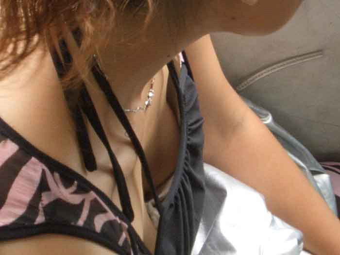 電車やバスに乗ってると油断しちゃう女性たち…セクシーな胸元に思わず勃起しそうなエロ過ぎる胸チラ画像 -