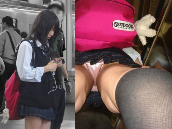 男なら覗きたくなる女子高生のスカートの中!可愛いパンツと成長期の太ももがエロい逆さ撮りエロ画像