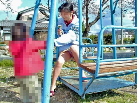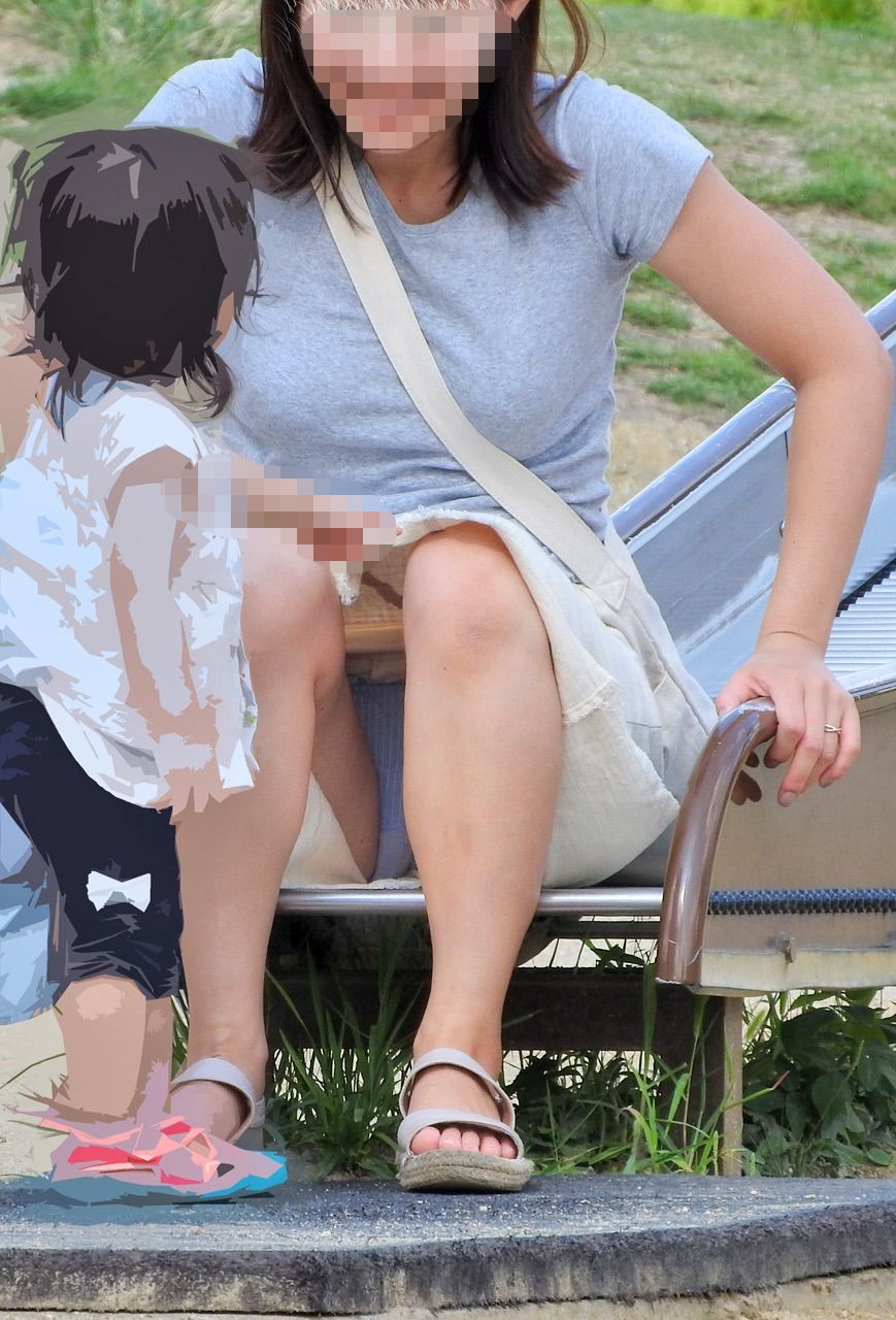 色っぽい人妻さんの下半身がたまらない…子供に気を取られ無防備な股間を撮られたパンチラエロ画像