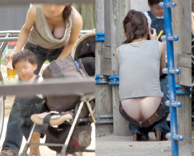 人妻さんの熟れた股間がやばい…子連れママの逆さ撮りパンチラがぐぅシコwwwww