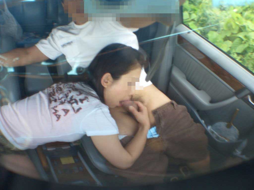 マンコを濡らしてチンポにしゃぶりつく女ども…誰かに見られてもかまわないカーセックスエロ画像