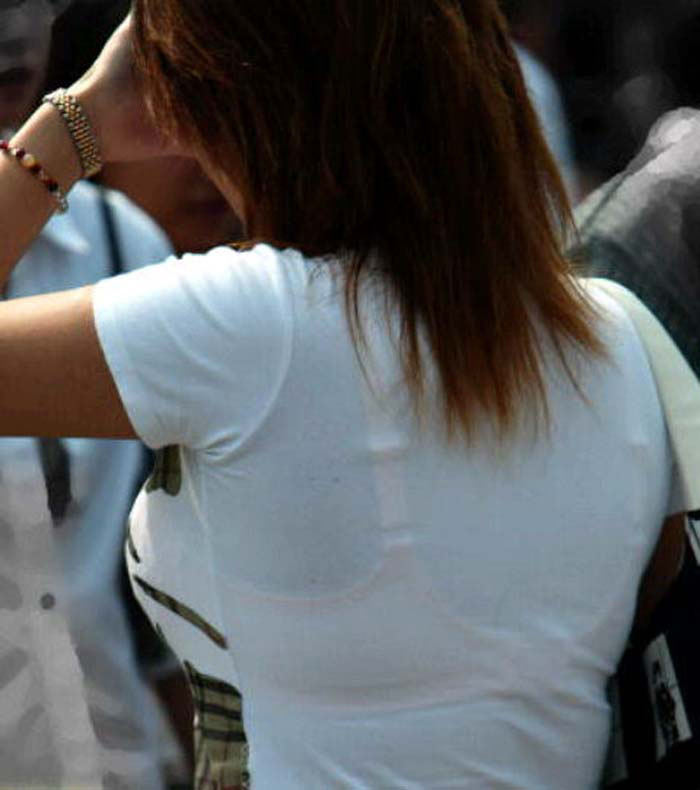 【街中盗撮】ブラジャー、パンツが透けちゃってる画像